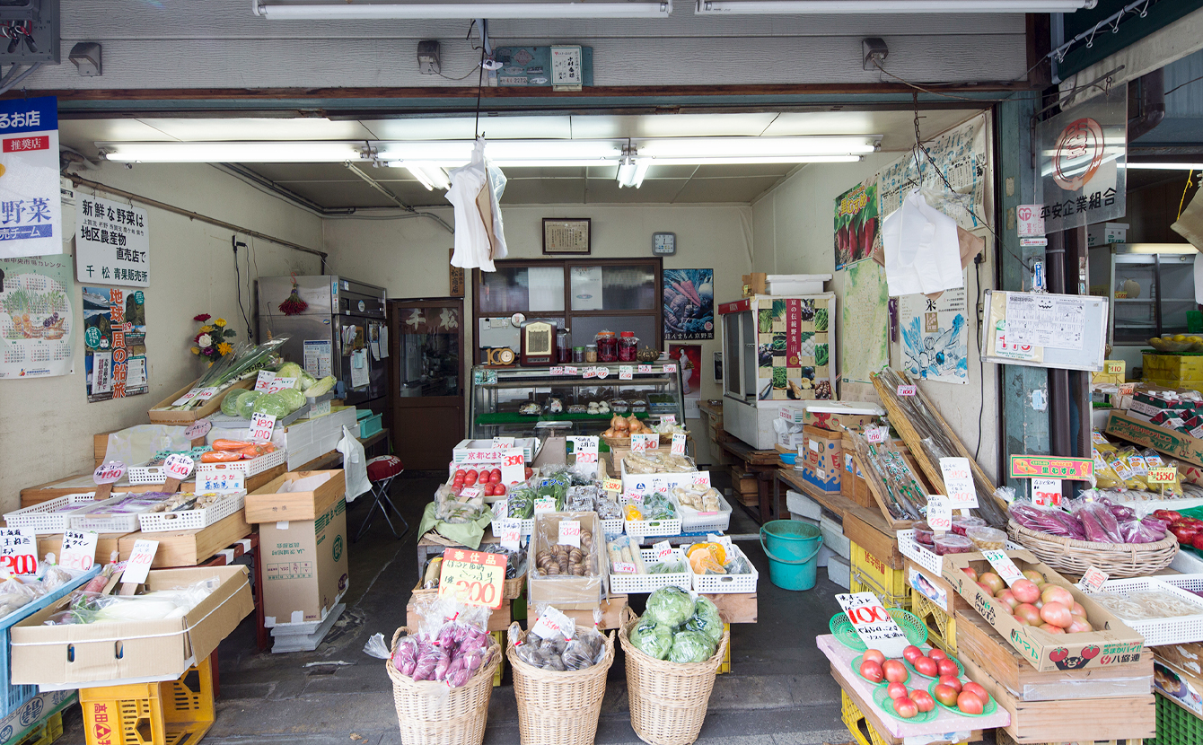 新大宮商店街の中ほどに位置し、創業以来140年以上続く店。現在は4代目による目利きで各地の野菜や果物を豊富に揃える。